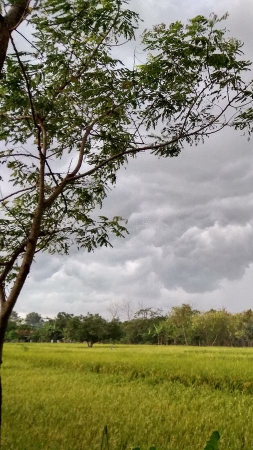 Mörkt svart moln över landet. Mörkt svart moln över fältet